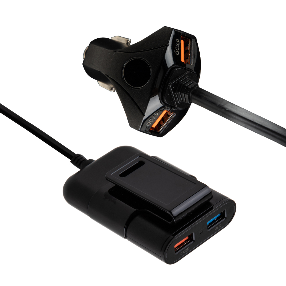 車用4孔充電器 延長線設計前座後座同時充電 24h快速出貨 Arz行動商城