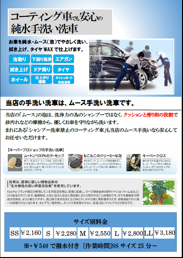 手洗い洗車 コーティング サービス一覧 高見澤 石油 オート事業部